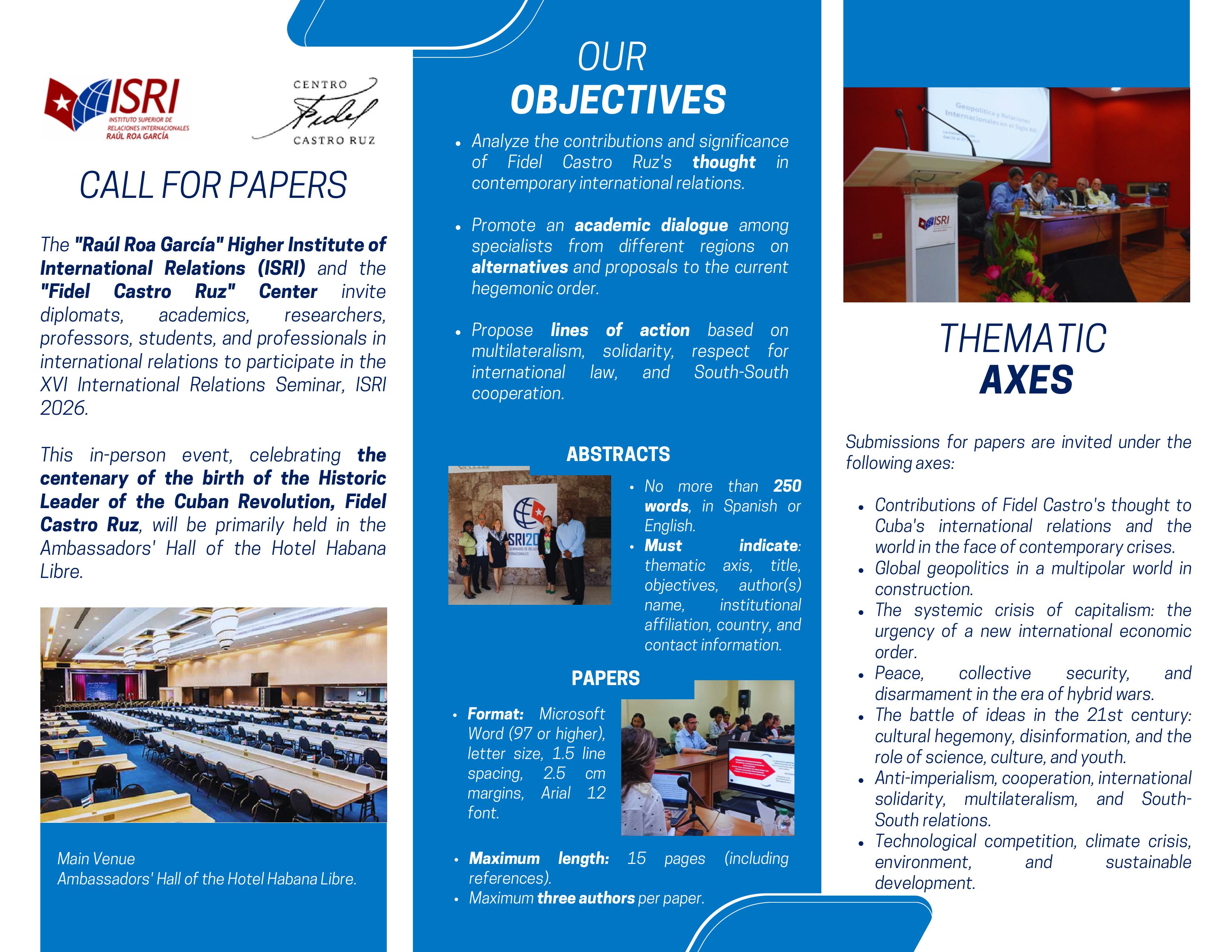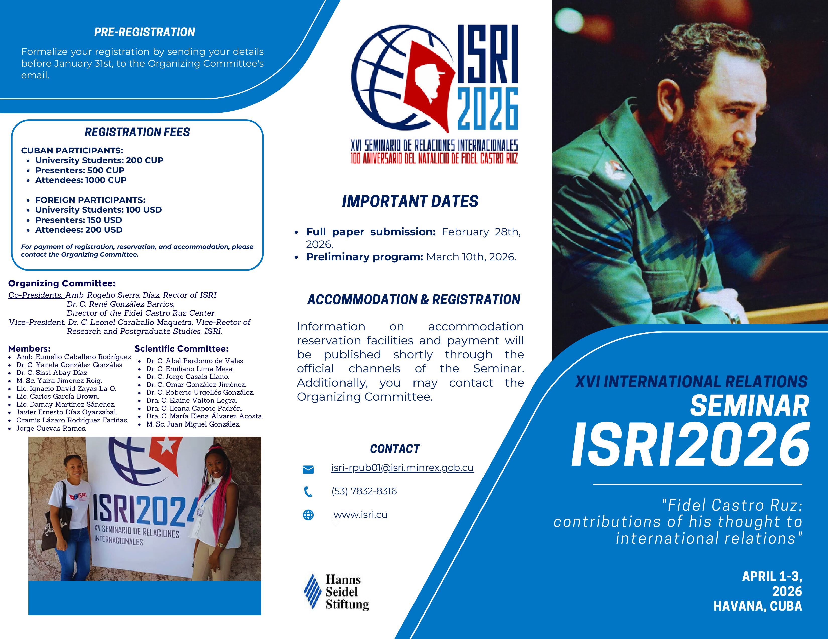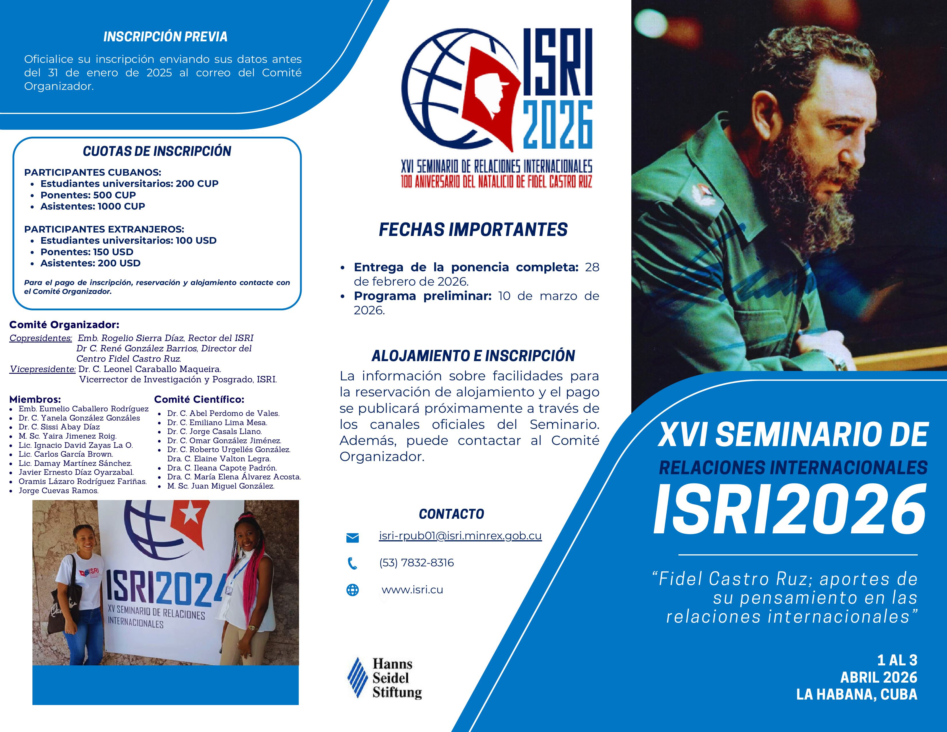 Convocatoria al Evento presencial XVI Seminario Internacional de Relaciones Internacionales, ISRI 2026.